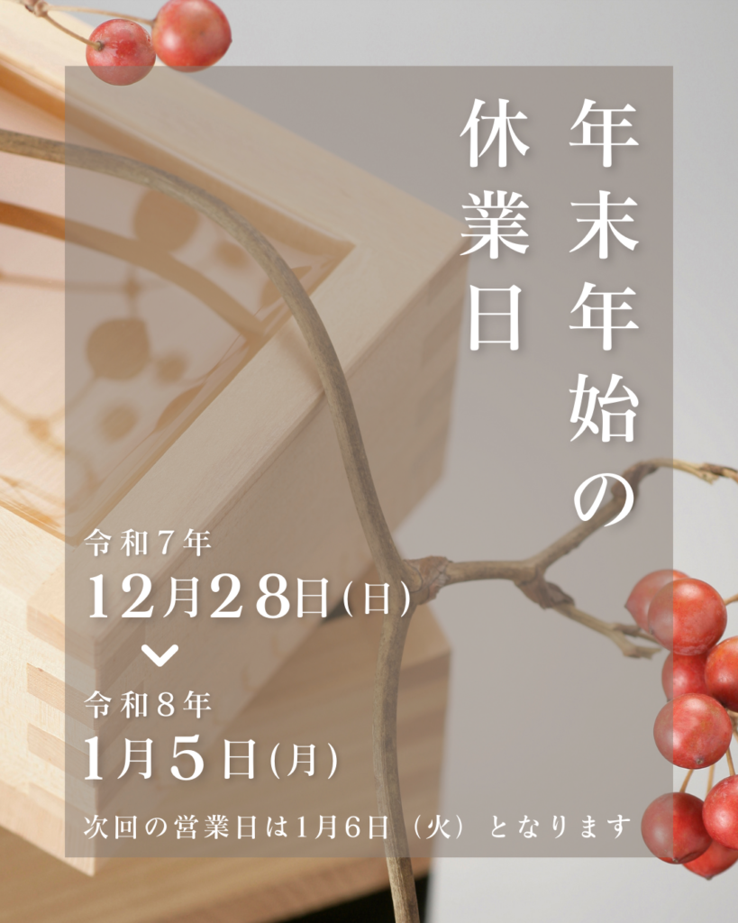 休業日 2025年12月28日(日)から2026年1月5日(月)まで